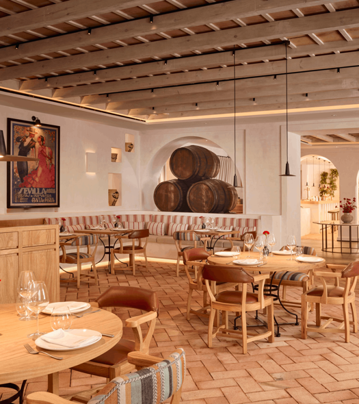 El Pimpi brings its 50 years of history to Marbella in a gastronomic experience based on traditional Malaga and Andalusian cuisine where the protagonist is local, fresh, and seasonal produce. Open every day, guests can enjoy a drink on the terrace, before a lunch of regional delights, a dinner to the sound of Spanish guitar music, or a post-dinner cocktail in a captivating environment brimming with Andalucia style and elegance.