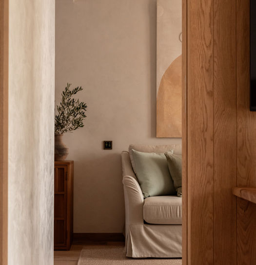With private pool terrace, outdoor shower and direct access to the villa’s garden pool, Suite 2 offers the perfect harmony between interior elegance and the beauty of the outdoors. Expect a spacious living area, with workspace, and a generous bedroom and ensuite bathroom.